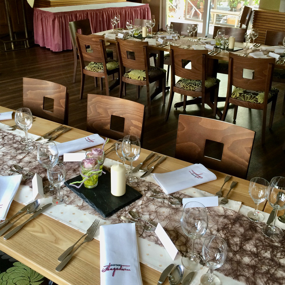 Ob Festlichkeiten wie Hochzeiten oder Konfirmation, sowie Tagungen – unser SAAL bietet Raum für Größere bis große Gesellschaften in einzigartigem Ambiente.